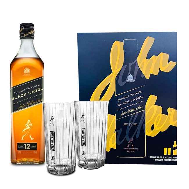 • Johnnie Walker Black 750cc + 2 Vasos JW