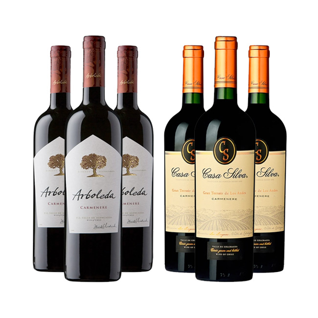 3 Arboleda Carmenere + 3 Casa Silva Gran Terroir Carmenere